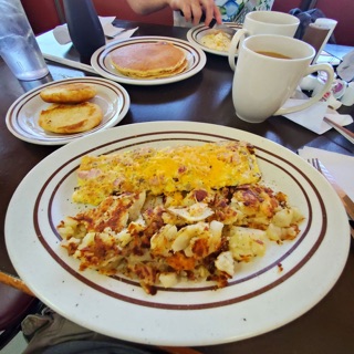 Tasty, friendly, but a but greasy. I had never been here before, and was excited to try it. I ordered the breakfast 2-2-2. It came with two eggs, two bacon, a biscuit and gravy and I added a side of h